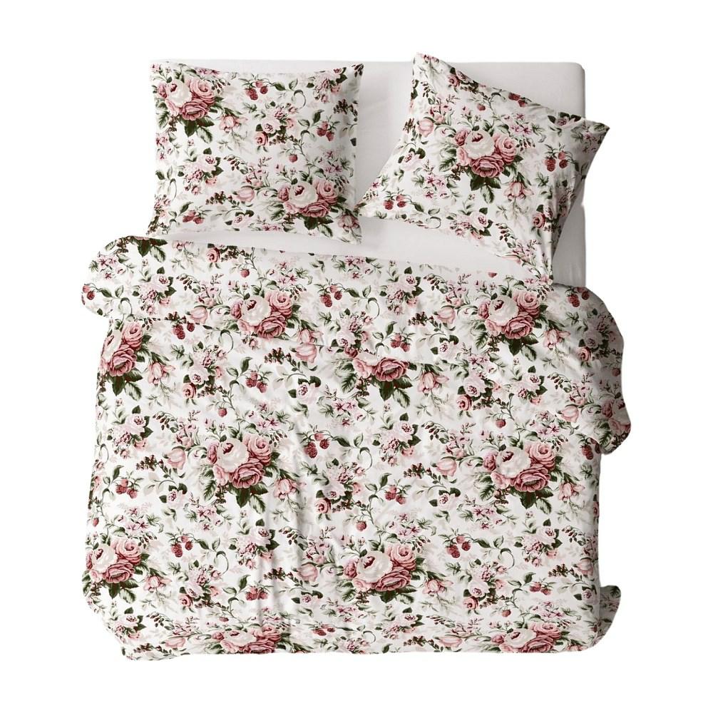 Pościel z kory 160×200 biała zielona pudrowa różowa kwiaty liście 1055N Bielawa KARO