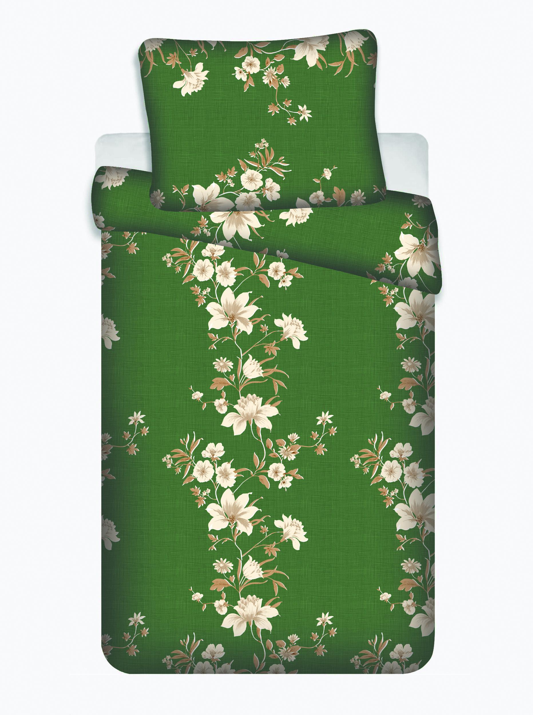 Pościel z mikrofibry 140×200 Correy II zielona kwiaty poszewka 70×90