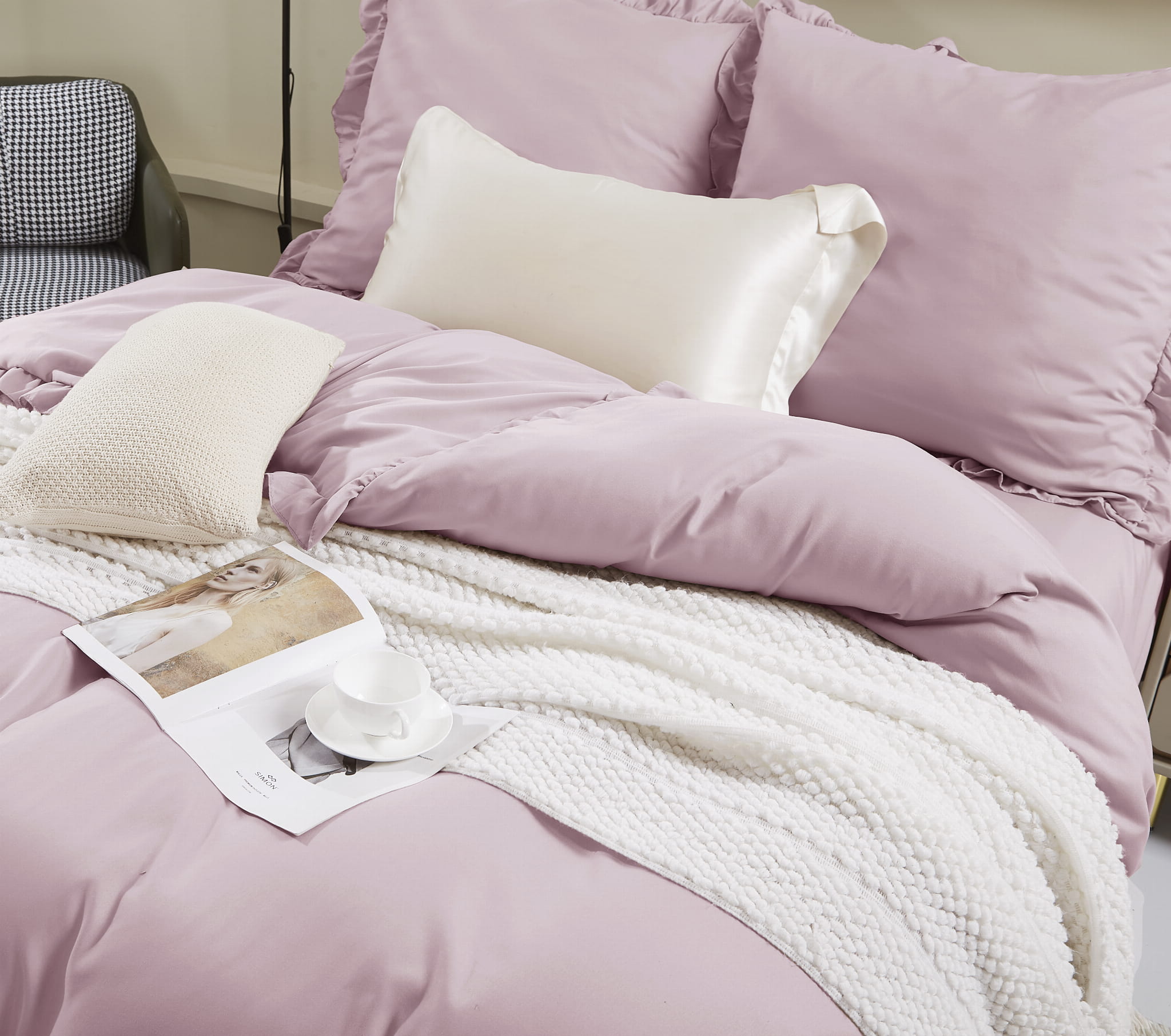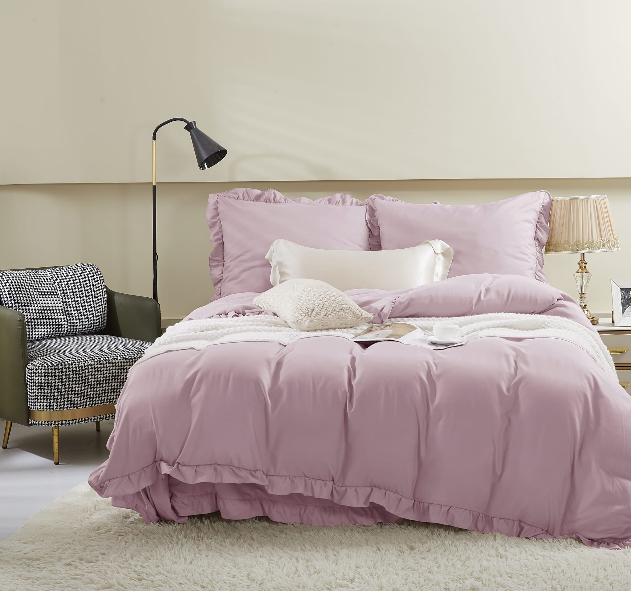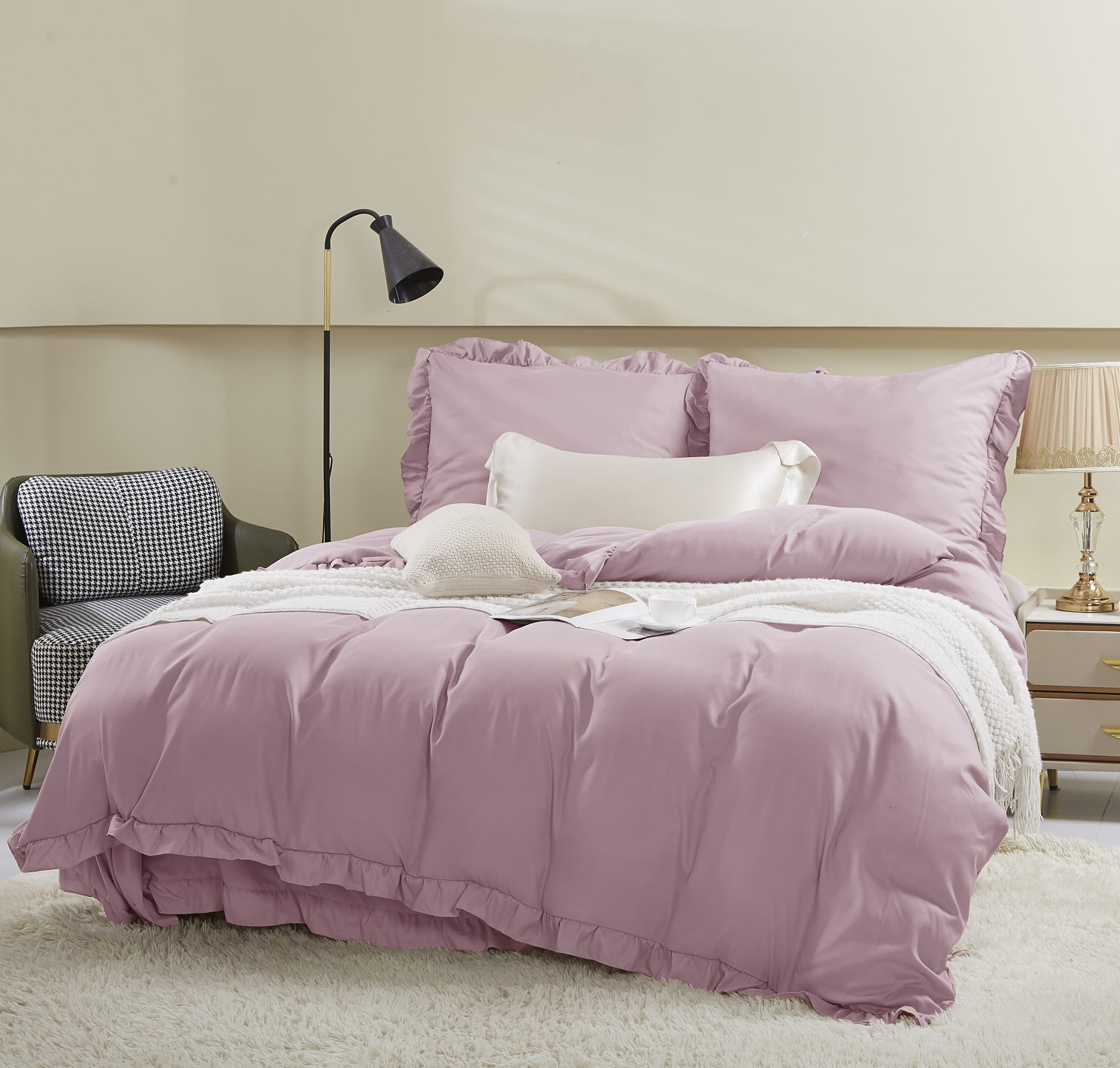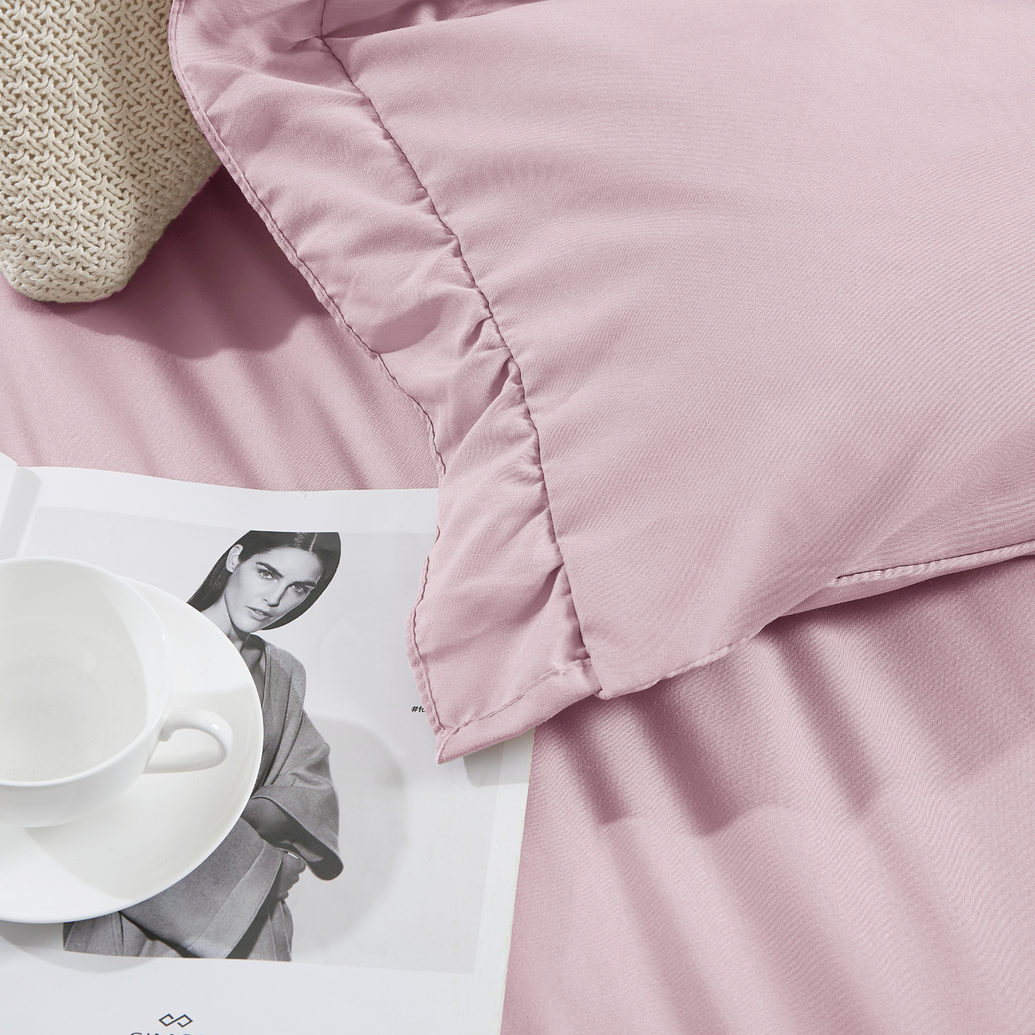 ilość Pościel z mikrofibry 140x200 Ruffy pudrowa różowa z falbanką I24