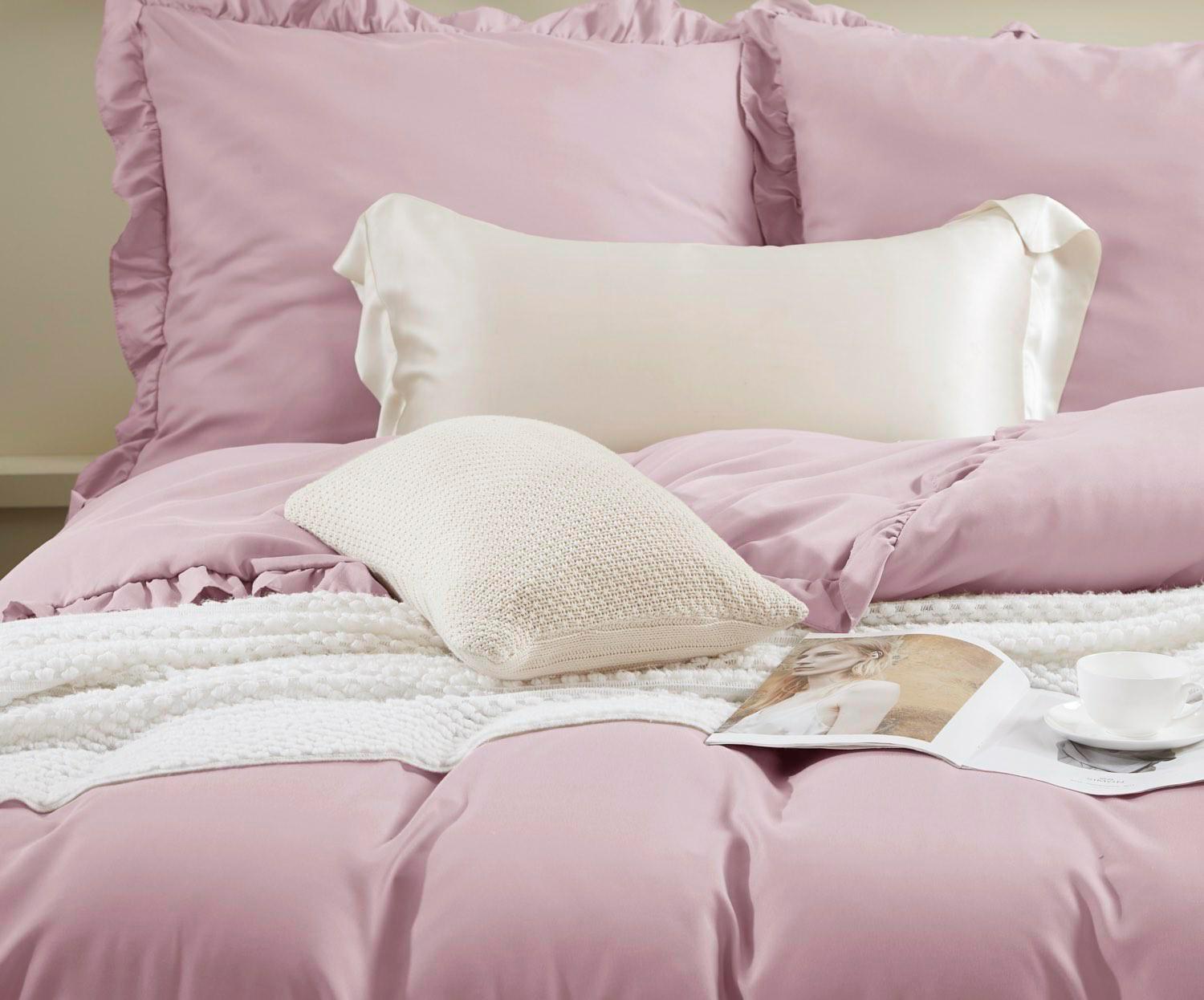 Pościel z mikrofibry 140×200 Ruffy pudrowa różowa z falbanką I24