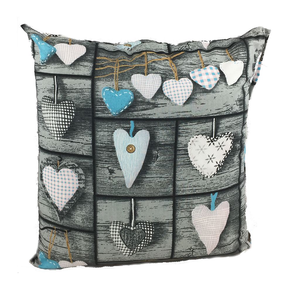 Poszewka bawełniana 40×40 cm 1113E – szara z niebieskimi sercami, obustronna