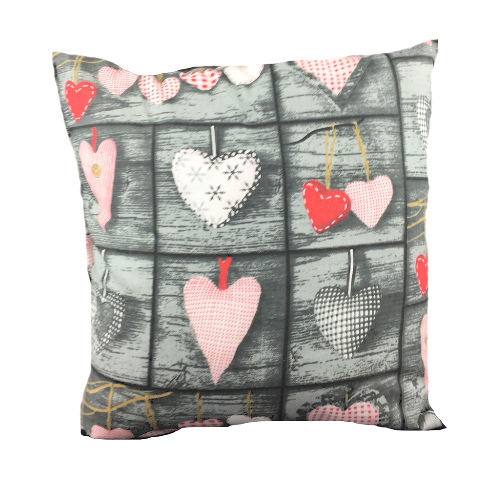 Poszewka bawełniana 40×40 szara serca różowe obustronna