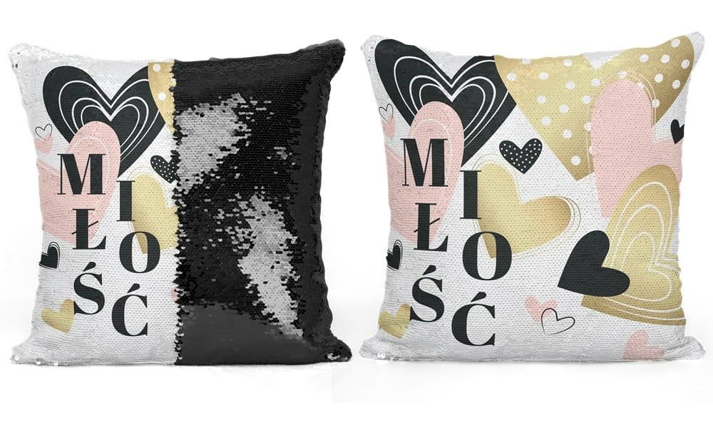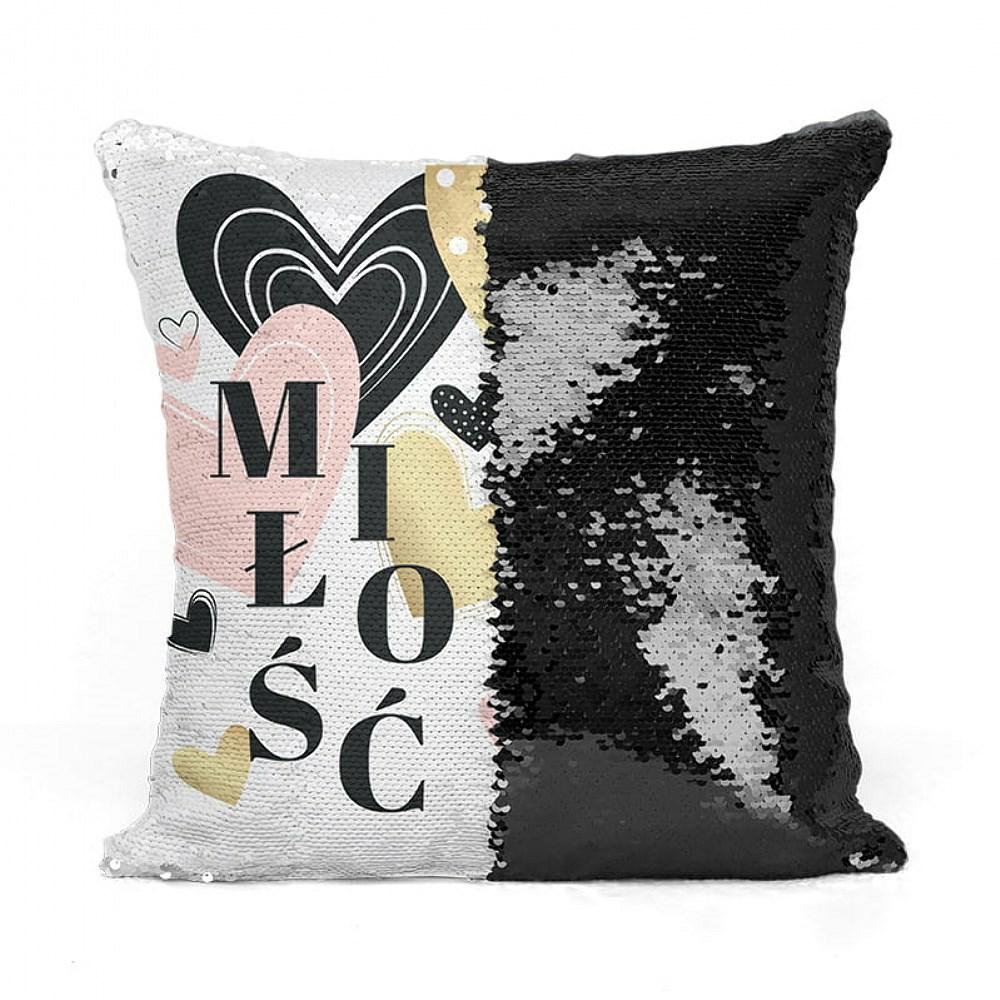 Poszewka dekoracyjna 40×40 Love cekiny Miłość czarna wielokolorowa Walentynki 2025