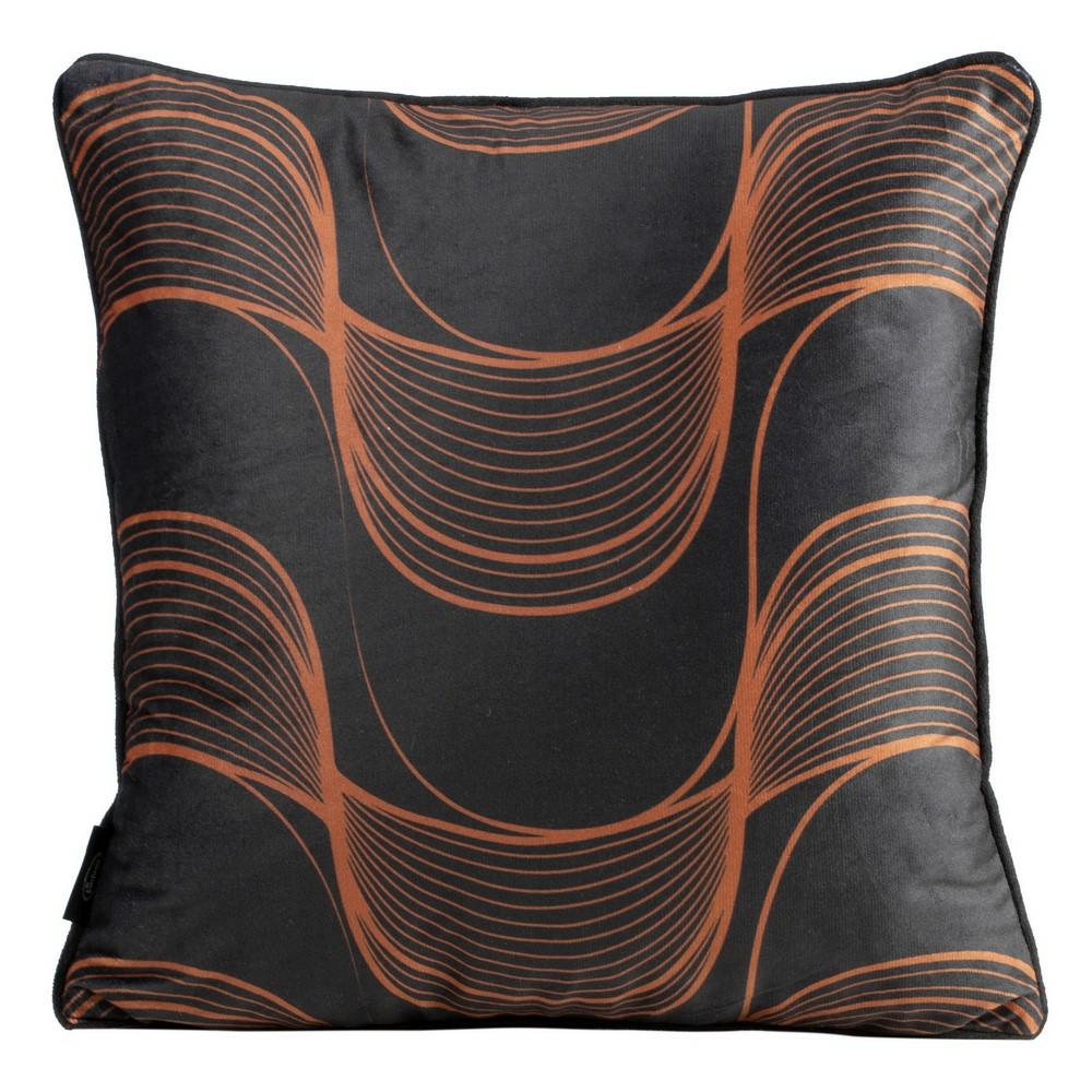 Poszewka dekoracyjna 40×40 Pola czarna ruda welurowa z symetrycznym falującym wzorem Eurofirany