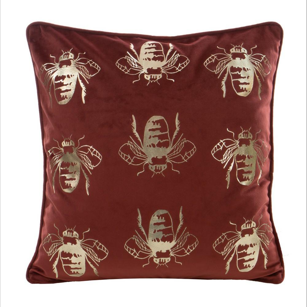 Poszewka dekoracyjna 45×45 Blink 15K ceglasta złota pszczoły welurowa Eurfirany