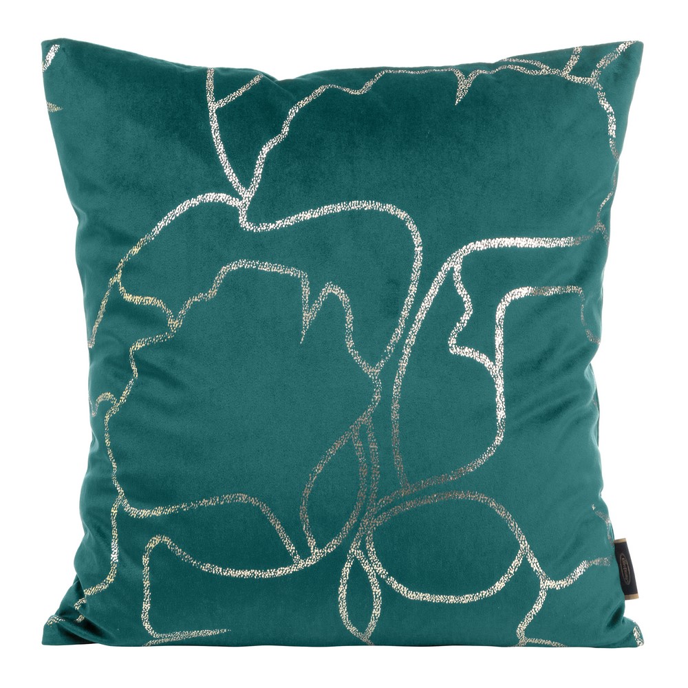 Poszewka dekoracyjna 45×45 Blink 35 turkusowa ciemna złota liście miłorzębu welurowa Eurofirany