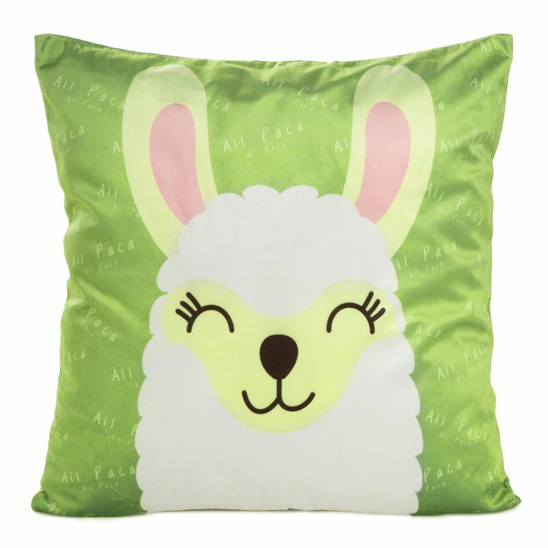 Poszewka dekoracyjna 45×45 Kids 2C zielona z motywem słodkiej alpaki welurowa dziecięca