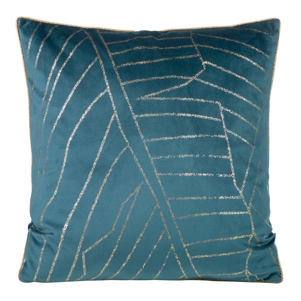 Poszewka dekoracyjna 45×45 Musa 1 granatowa ze złotym nadrukiem liści welurowa Limited Collection Eurofirany