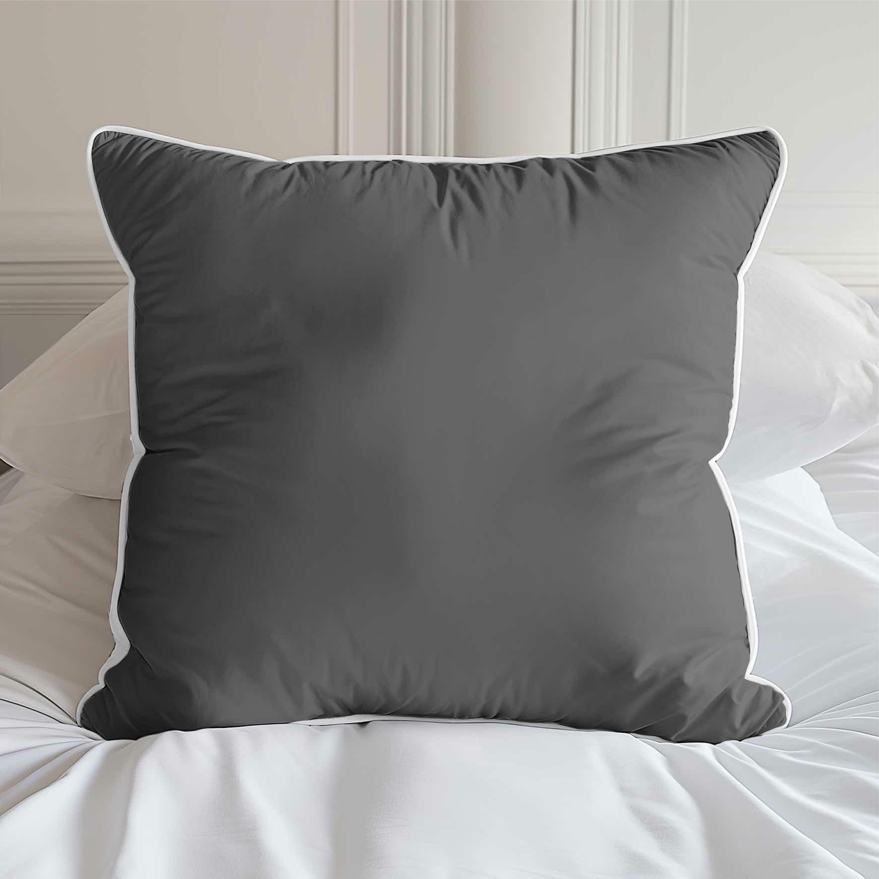 Głęboki grafitowy kolor z ozdobną lamówką nadaje poszewce nowoczesnego i szykownego charakteru. Świetnie komponuje się z jasnymi jak i ciemnymi aranżacjami wnętrz, dodając im klasy i wyrafinowania.