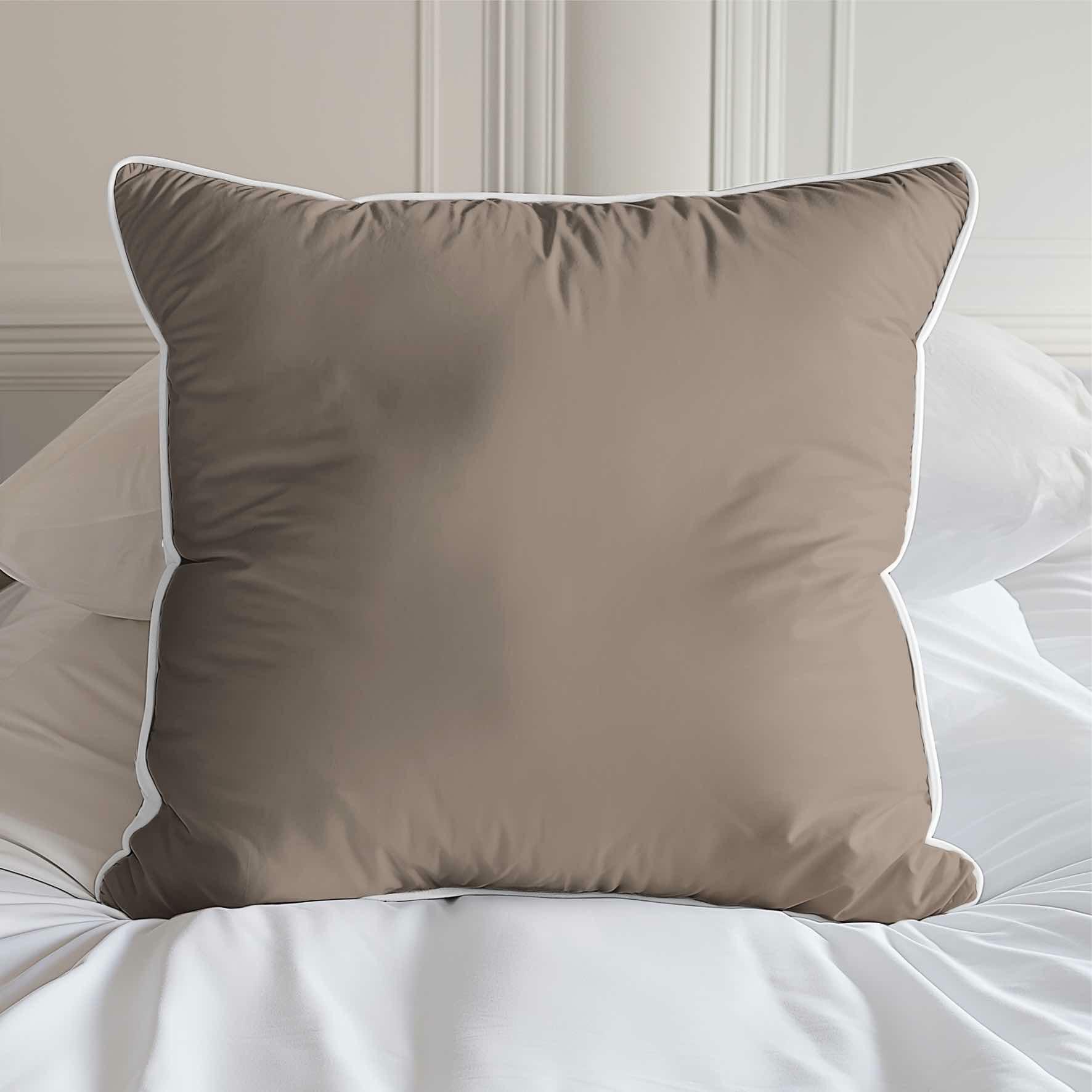 Szlachetny kolor taupe w połączeniu z subtelną lamówką sprawia, że poszewka idealnie pasuje do nowoczesnych i klasycznych wnętrz. To prosty sposób, by dodać sypialni szyku.