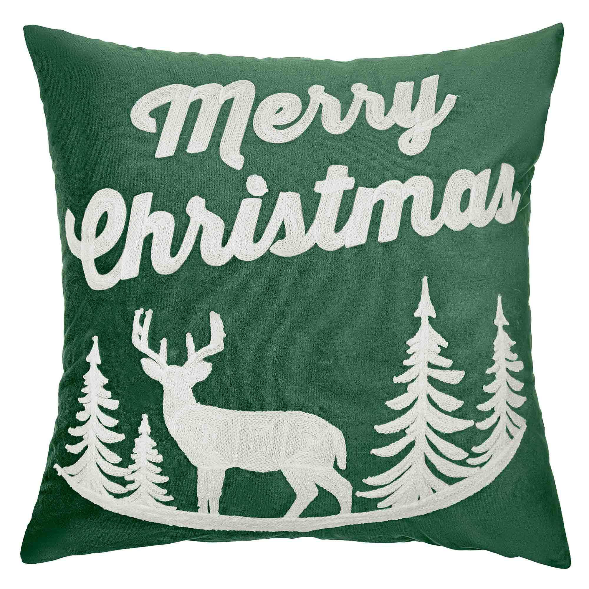 Poszewka świąteczna 45×45 Renifer zielona butelkowa Merry Christmas BN23
