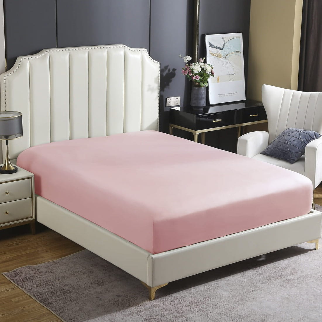 Prześcieradło satynowe z gumką 160×200 pudrowe różowe jednobarwne na wysoki materac I24