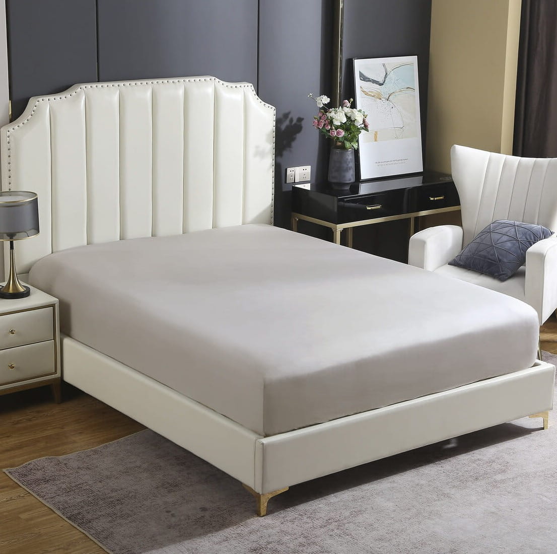 Satynowe Prześcieradło z Gumką 180×200, Rozmiar: 180×200+30cm, Materiał: bawełna satynowa, Skład: 100% bawełna, Gramatura: 160 g/m2.
