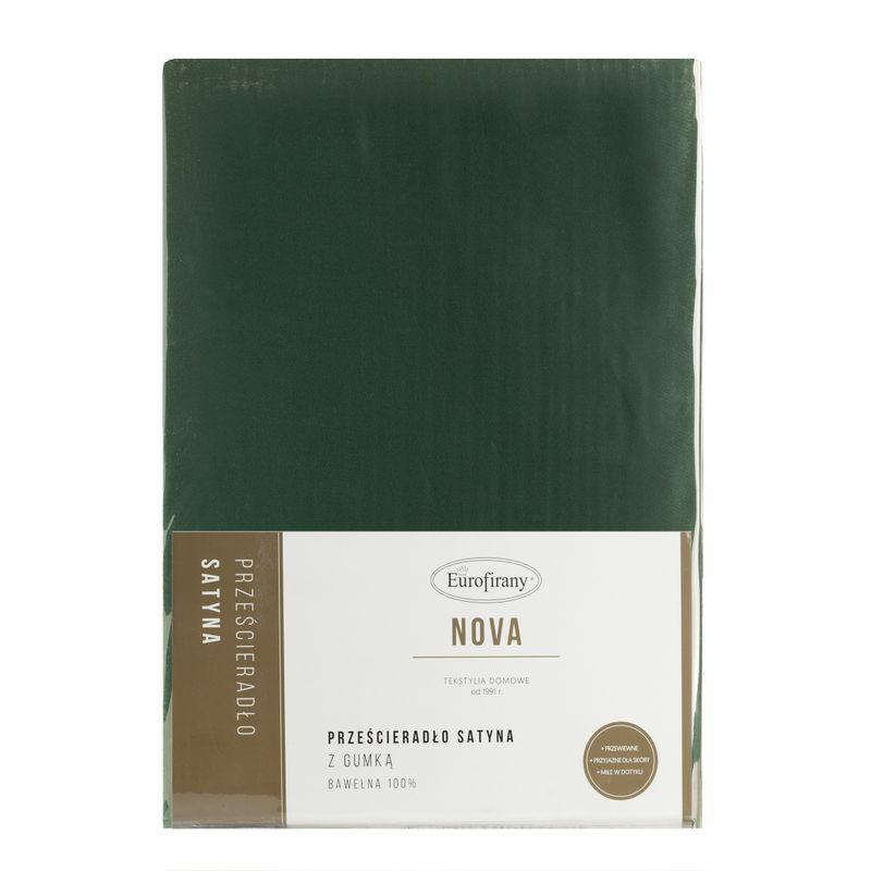 Prześcieradło satynowe z gumką 220×200 Nova zielone ciemne na wysoki materac 30 cm Eurofirany