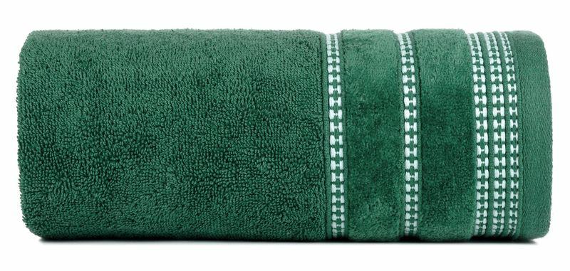 Ręcznik 50×90 Amanda zielony ciemny z ozdobną welurową bordiurą w pasy frotte 500 g/m2 Eurofirany