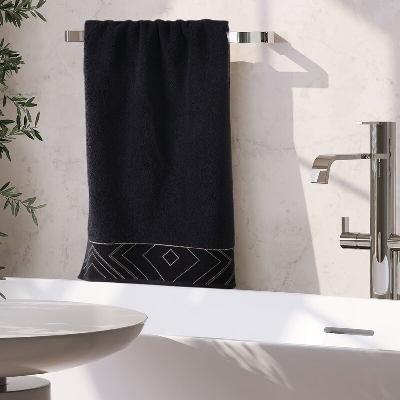 Ręcznik Victoria 9 to połączenie wyjątkowego designu z funkcjonalnością. Dzięki modnemu, geometrycznemu wzorowi w odcieniach czerni i złota, wniesiesz do swojej łazienki nutę luksusu i nowoczesności. Idealny do codziennego użytku, ale także jako efektowny dodatek dekoracyjny.