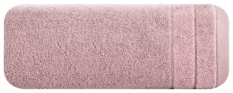 Elegancki ręcznik z delikatnej i bardzo chłonnej tkaniny frotte, jednokolorowy. Krawędzie zdobione subtelną bordiurą z welwetu. Łatwy w praniu, trwałe kolory. szerokość: 30 cm, długość: 50 cm, kolor: liliowy, Gramatura: 500 GSM, Skład: 100% bawełna