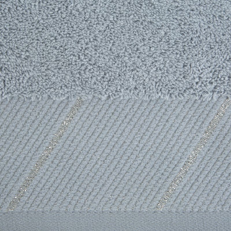 Ręcznik z szenilową bordiurą w błyszczące ukośne prążki szerokość: 70 cm, długość: 140 cm, kolor: jasnoszary, Gramatura: 485 GSM, Skład: 100% bawełna; 97% bawełna 3% poliester