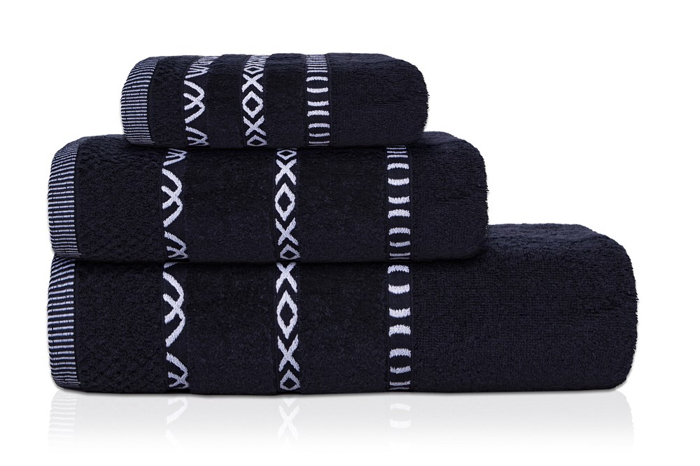 Intensywny czarny kolor i subtelne zdobienia sprawiają, że ręcznik nie tylko doskonale spełnia swoje funkcje, ale także prezentuje się bardzo stylowo w każdej łazience.
