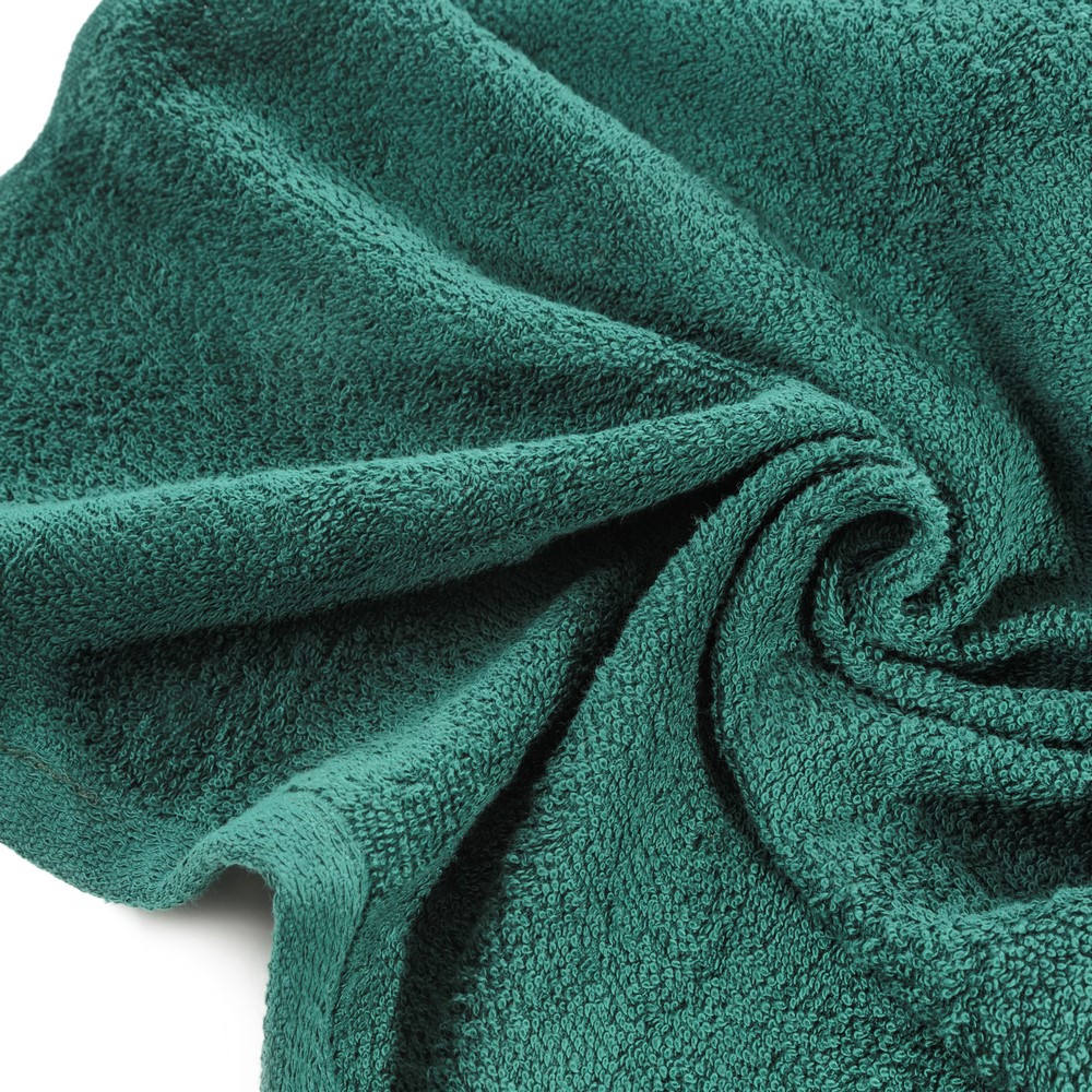Jednokolorowy, gładki ręcznik kąpielowy z miękkiej tkaniny bawełnianej o splocie frotte. Lekki, trwały i bardzo chłonny. Kolory odporne na częste pranie. szerokość: 50 cm, długość: 100 cm, kolor: butelkowy zielony, Gramatura: 400 GSM, Skład: 100% bawełna