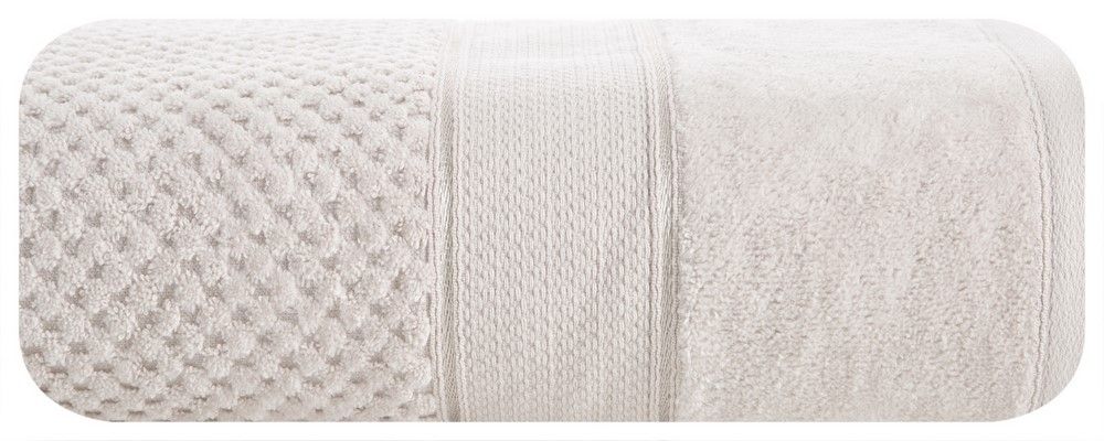 Ręcznik Jessi 50×90 beżowy frotte 500g/m2 z fakturą wytłaczanej krateczki i welurową bordiurą Eurofirany