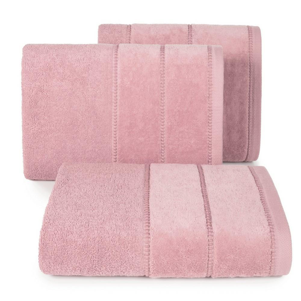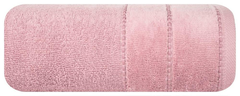 Ręcznik z ozdobną welurową bordiurą w pasy szerokość: 30 cm, długość: 50 cm, kolor: liliowy, Gramatura: 500 GSM, Skład: 100% bawełna; 60% bawełna 40% poliester