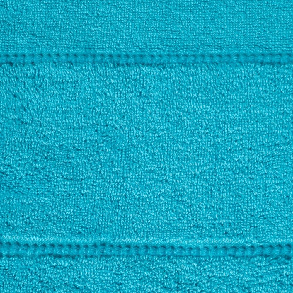 Ręcznik z ozdobną welurową bordiurą w pasy szerokość: 70 cm, długość: 140 cm, kolor: turkusowy, Gramatura: 500 GSM, Skład: 100% bawełna; 60% bawełna 40% poliester