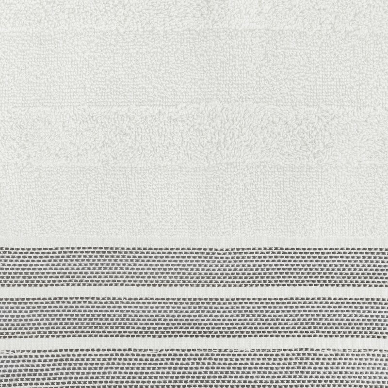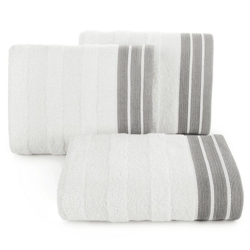 Białe pasy nadają ręcznikowi subtelny, nowoczesny charakter, który pasuje zarówno do klasycznych, jak i nowoczesnych aranżacji łazienki.