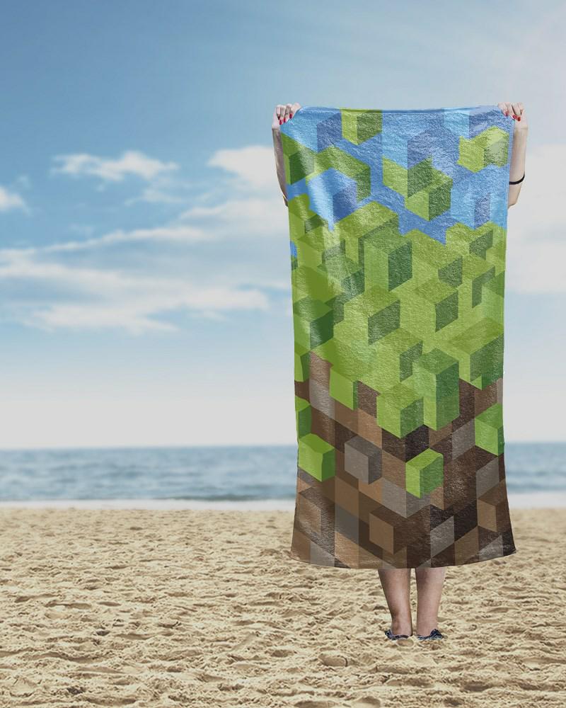 Ręcznik plażowy 70×140 Minecraft Pixel 77 zielony brązowy dziecięcy bawełniany