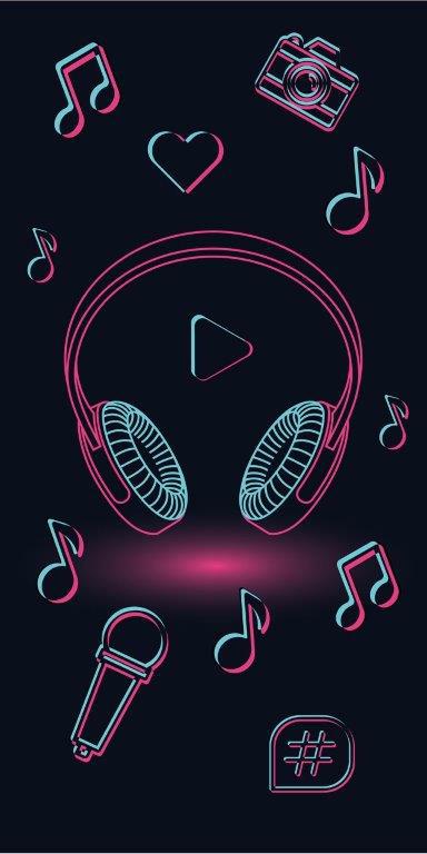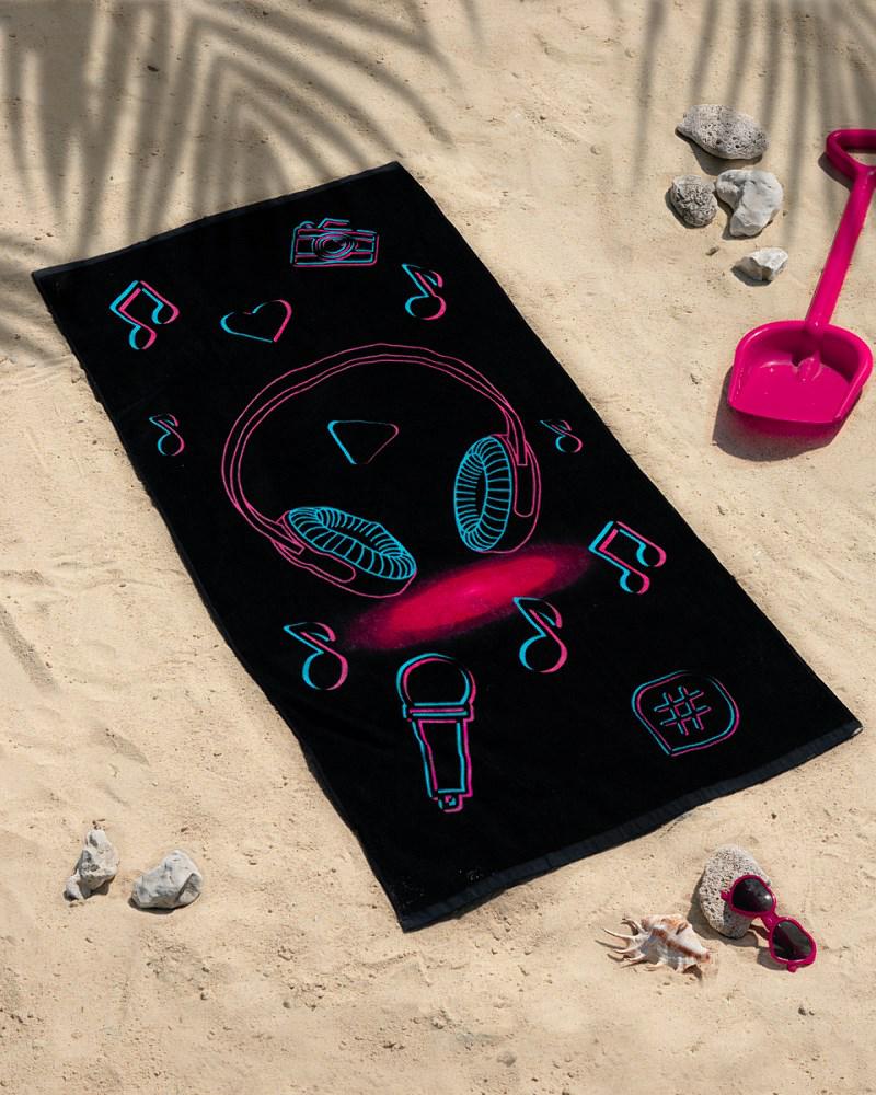 Ręcznik plażowy 70×140 Słuchawki Świat muzyki nutki serduszka czarny 1101 dziecięcy bawełniany młodzieżowy mikrofon