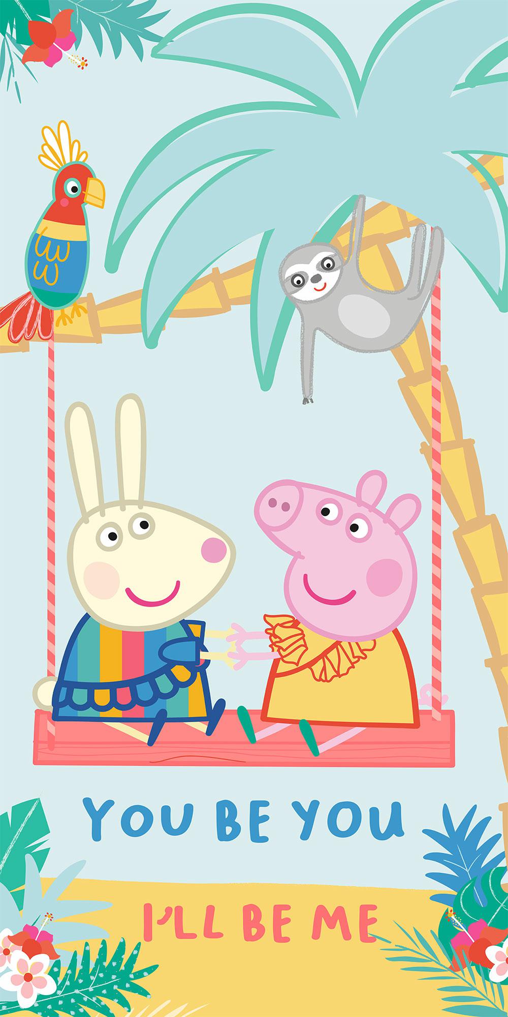Kolorowy wzór z Peppą na huśtawce wywoła uśmiech na twarzy każdego malucha. To ręcznik, który dzieci naprawdę chcą zabrać ze sobą!