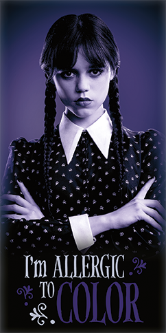 Kolorowy i stylowy motyw z popularnego serialu „Wednesday” sprawi, że każde dziecko poczuje się wyjątkowo. Idealny dla fanów mody i niebanalnych dodatków.