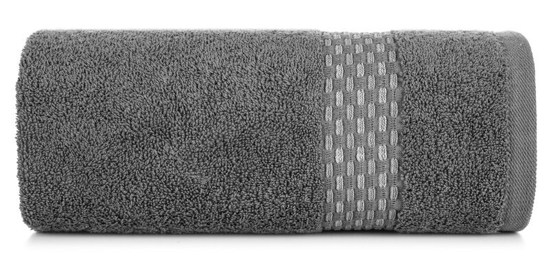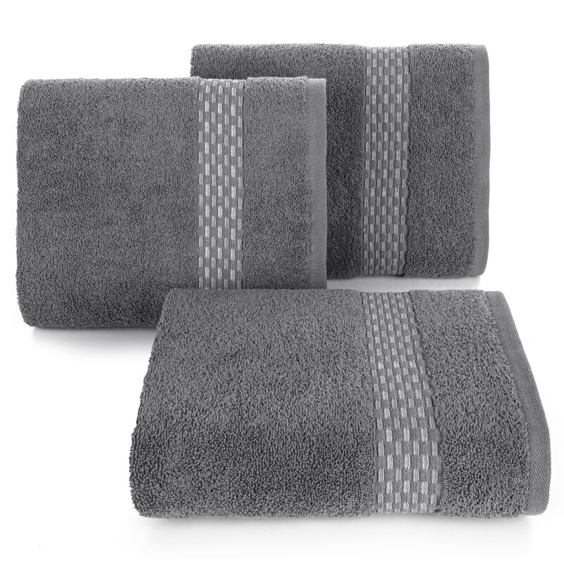 Ręcznik z ozdobną, żakardową bordiurą szerokość: 30 cm, długość: 50 cm, kolor: stalowy, Gramatura: 500 GSM, Skład: 100% bawełna; 95% bawełna 5% poliester