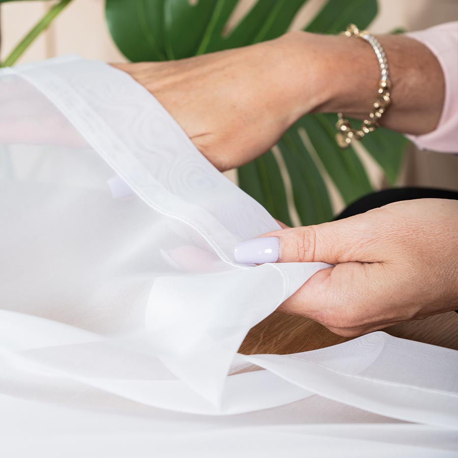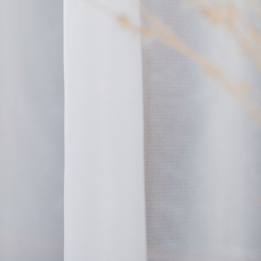 Woal to lekki i zwiewny materiał, który pięknie rozprasza światło dzienne, tworząc przytulną atmosferę w pomieszczeniu. Jednocześnie zachowuje prywatność wnętrza, pozwalając cieszyć się jasnym i naturalnym światłem.
