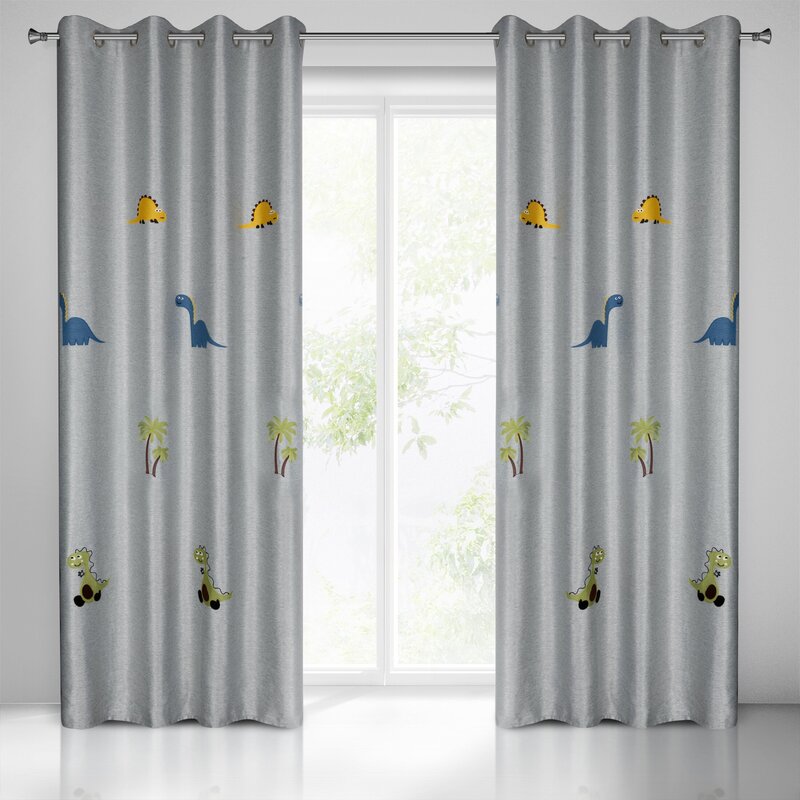 Zasłona dziecięca 140×250 cm Dino srebrna z zieloną aplikacją dinozaurów – Eurofirany