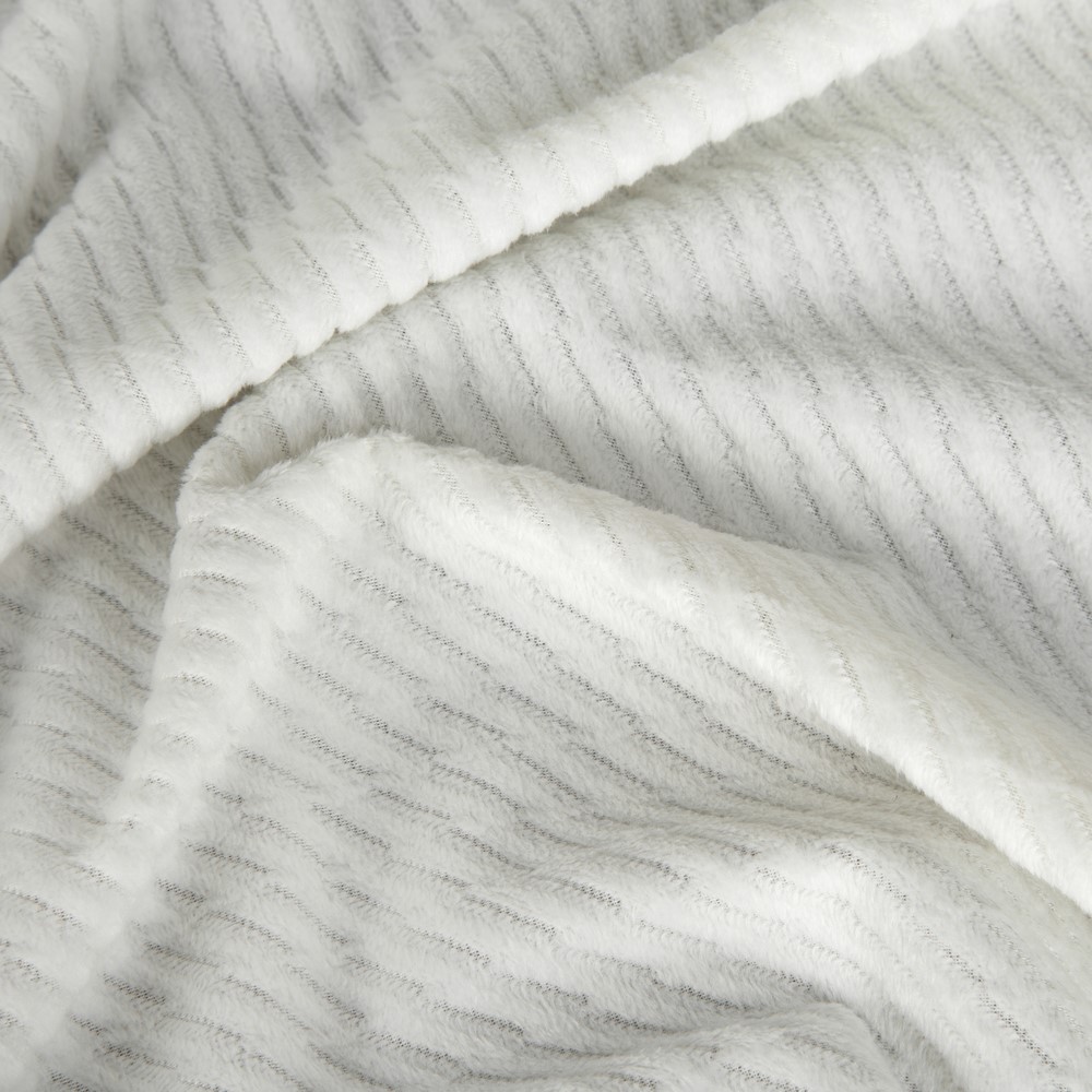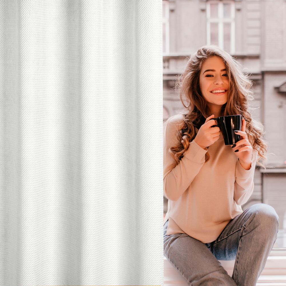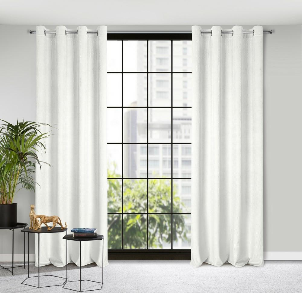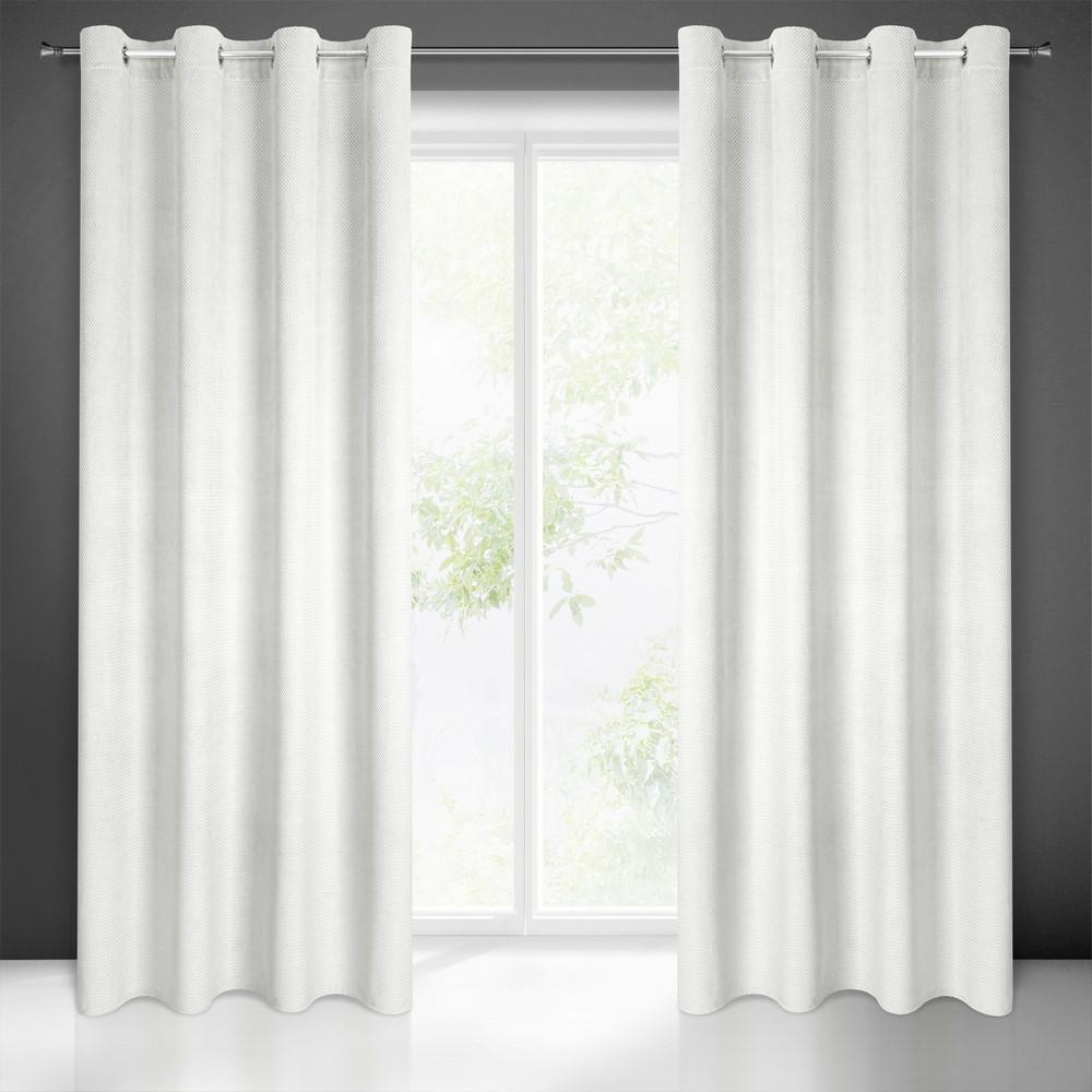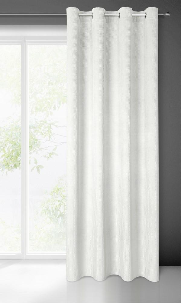 Zasłona 140×250 Eliza biała gotowa na przelotkach welurowa z drobnym wytłaczanym wzorkiem geometrycznym Eurofirany