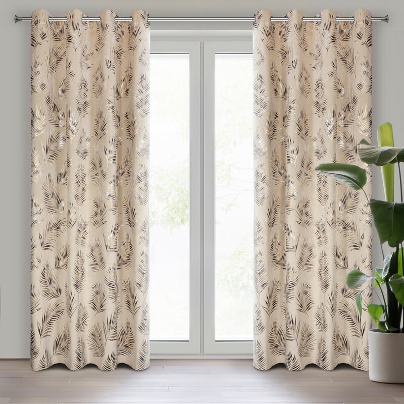Zasłona 140×250 Gloria 2 beżowa szampańska liście welurowa Eurofirany
