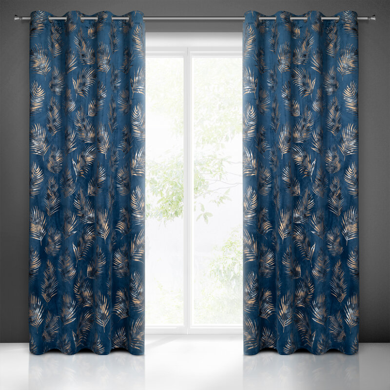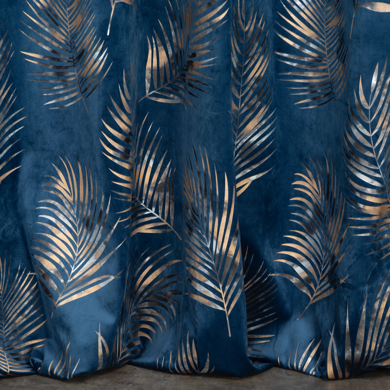 Zasłona 140×250 Gloria granatowa złota liście welurowa gotowa na przelotkach Eurofirany