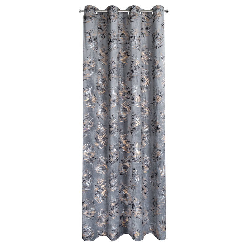 Zasłona welwetowa z szampańskim nadrukiem szerokość: 140 cm, długość: 250 cm, kolor: stalowy, Gramatura: 200 GSM, Skład: 100% poliester