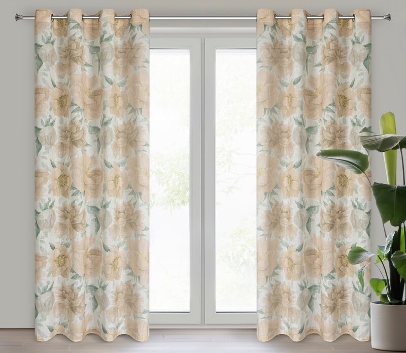 Zasłona 140×250 Karla naturalna ruda kwiaty gotowa na przelotkach Z10 Eurofirany