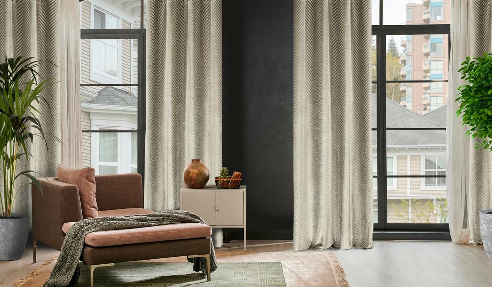 Zasłona 140×250 Lussi beżowa ciemna gotowa na przelotkach welurowa z żakardowym wzorem Eurofirany