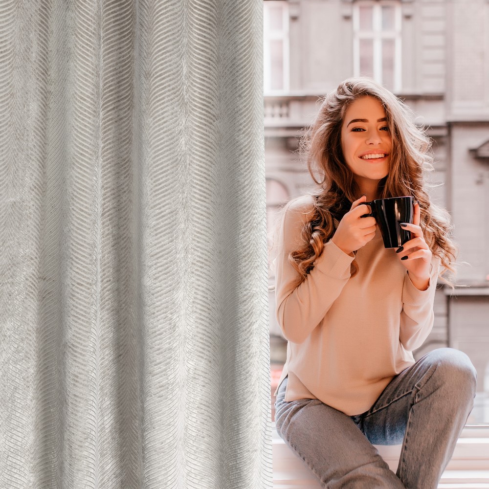 Wysokiej jakości welur to miękka i przyjemna w dotyku tkanina, która nadaje zasłonie luksusowy charakter. Żakardowy wzór dodaje głębi i wyjątkowego designu, tworząc efektowną dekorację, która jednocześnie filtruje światło, zapewniając komfort i prywatność.