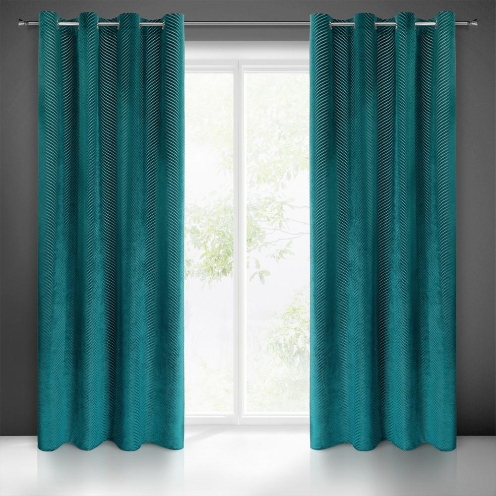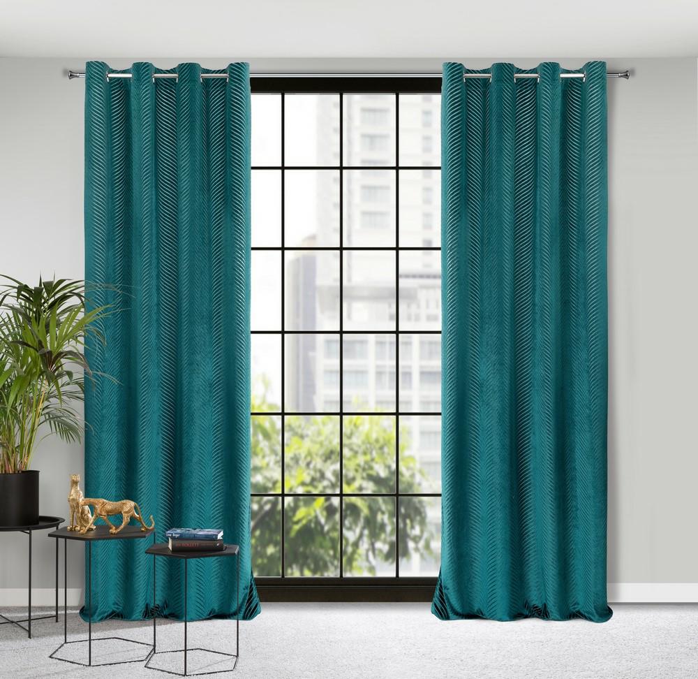 Zasłona 140×250 Lussi turkusowa ciemna gotowa na przelotkach welurowa z żakardowym wzorem Eurofirany