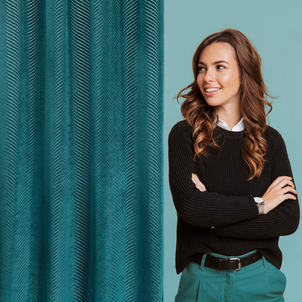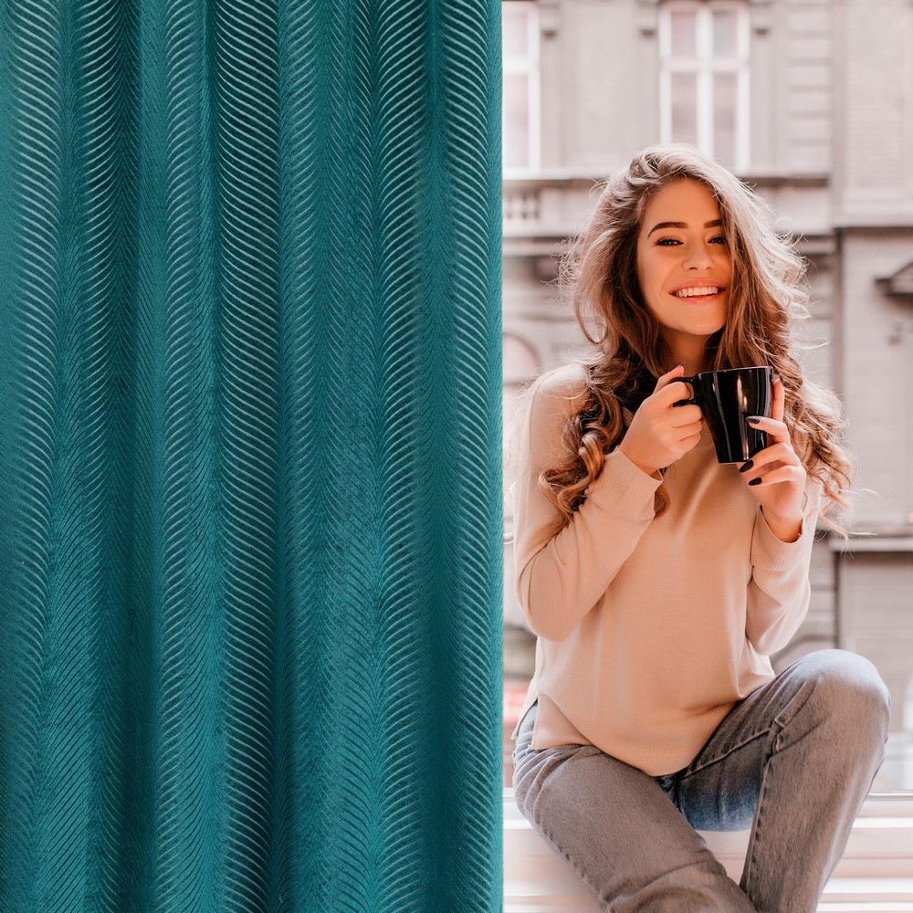 Welurowa tkanina o gęstym splocie nie tylko efektownie się prezentuje, ale również zapewnia przyjemny dotyk i pięknie odbija światło, tworząc efekt głębi i elegancji. Ciemny turkus to kolor pełen klasy, który świetnie komponuje się zarówno z nowoczesnymi, jak i klasycznymi aranżacjami.