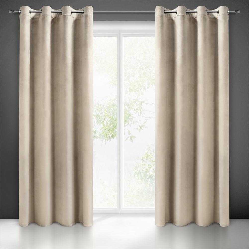 Zasłona 140×250 Melanie beżowa welurowa gotowa na przelotkach Eurofirany