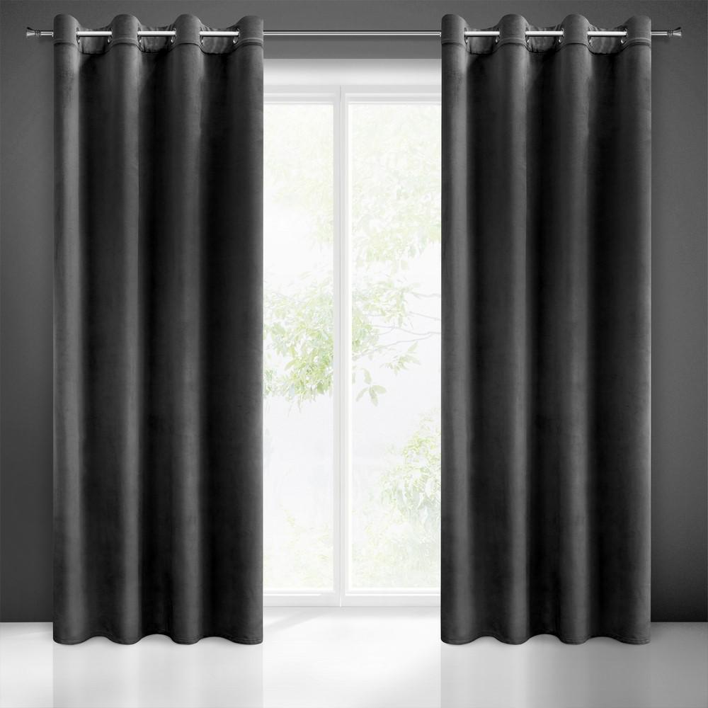 Zasłona 140×250 Melanie czarna welurowa gotowa na przelotkach Eurofirany