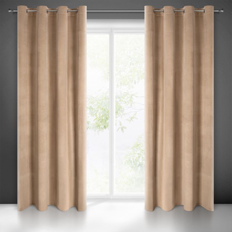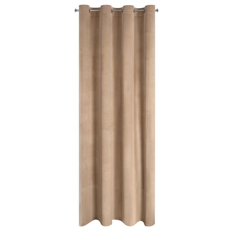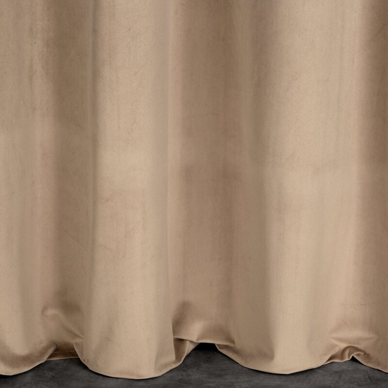 Miękka zasłona z welwetu o matowym wykończeniu. Mięsista tkanina o średnich właściwościach zaciemniających nadaje wnętrzu eleganckiego charakteru. szerokość: 140 cm, długość: 250 cm, kolor: ciemnobeżowy, Gramatura: 200 GSM, Skład: 100% poliester