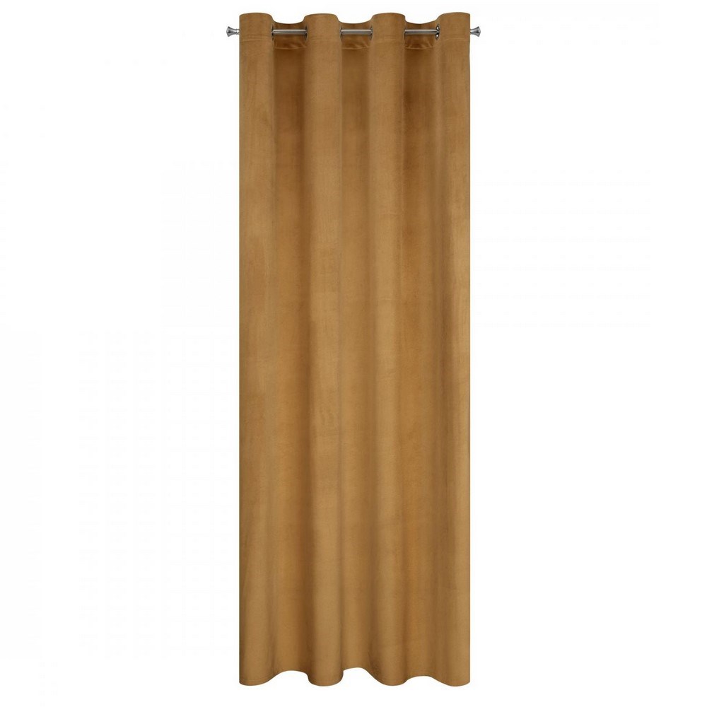 Miękka zasłona z welwetu o matowym wykończeniu. Mięsista tkanina o średnich właściwościach zaciemniających nadaje wnętrzu eleganckiego charakteru. szerokość: 140 cm, długość: 250 cm, kolor: miodowy, Gramatura: 200 GSM, Skład: 100% poliester