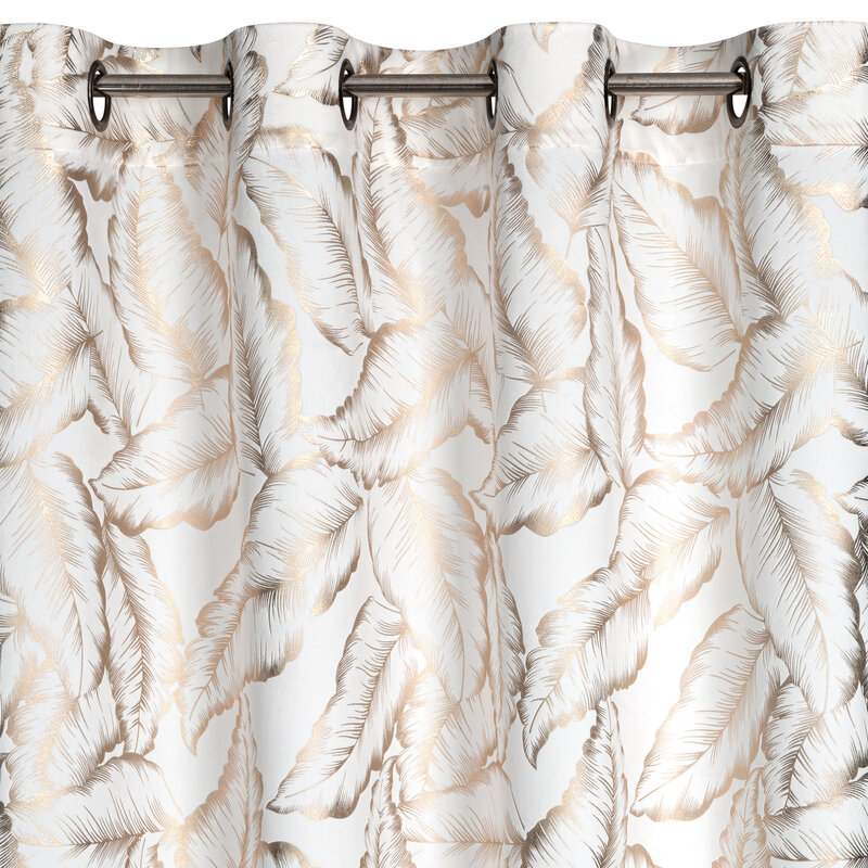 Motyw złotych liści na białym tle to idealne połączenie klasyki z nowoczesnym designem. Zasłona doskonale komponuje się z jasnymi i ciemnymi wnętrzami, dodając im wyrafinowanego charakteru.