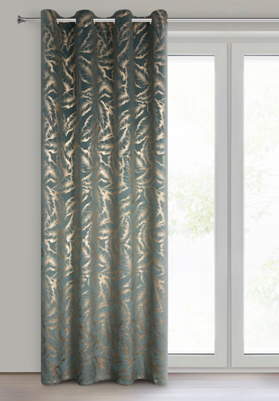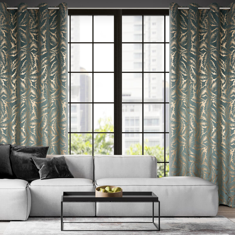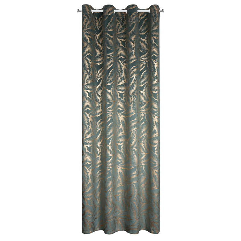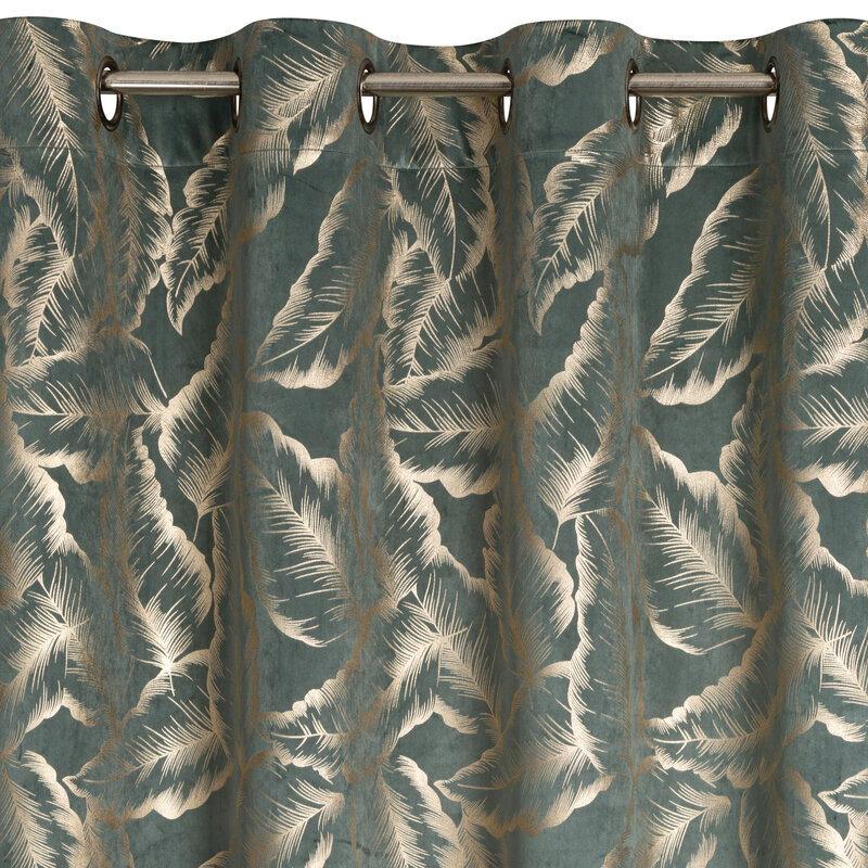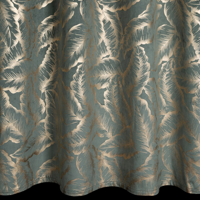 Zasłona 140×250 Milena miętowa złota liście gotowa na przelotkach Eurofirany